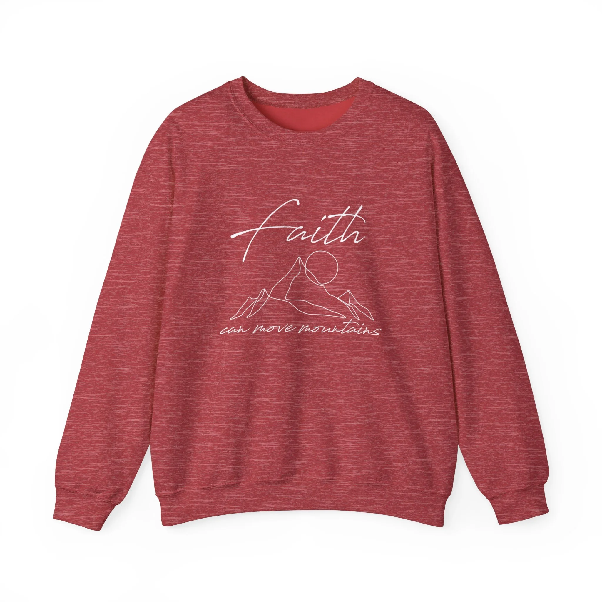 Stay cozy and inspired with our “Faith Can Move Mountains” sweatshirt. Featuring an elegant line drawing of a mountain and the word “Faith,” this sweatshirt captures the powerful message from Matthew 17. It’s more than just a sweatshirt—it’s a statement of bold belief and a reminder to keep trusting in what’s possible with God. Made for comfort and style, this sweatshirt is perfect for chilly days or layering up, carrying a message that reminds you—and everyone around you—that with faith, there are no limits.